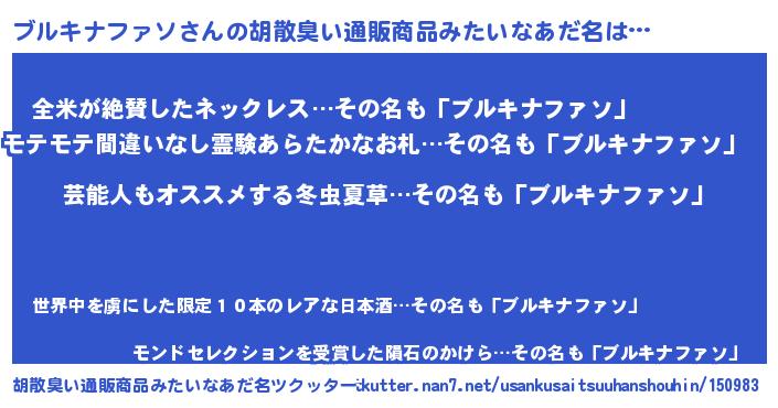 | 意味不明あだ名 | 『自称ブルキナファソ』 |