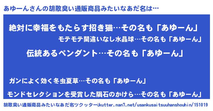 | ヘコむあだ名 | 『あゆっちょ』『あゆーん(小並感)』 |