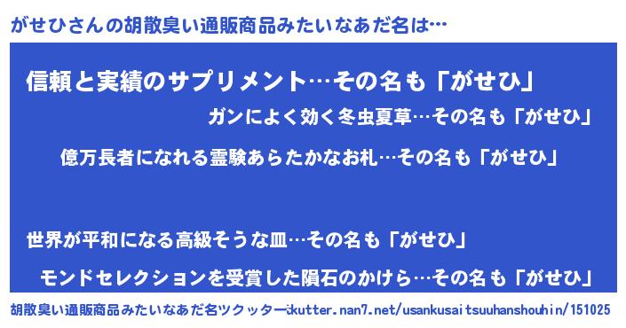 | 男性向けラノベタイトル風あだ名 | 『ガセヒアートオンライン』 |