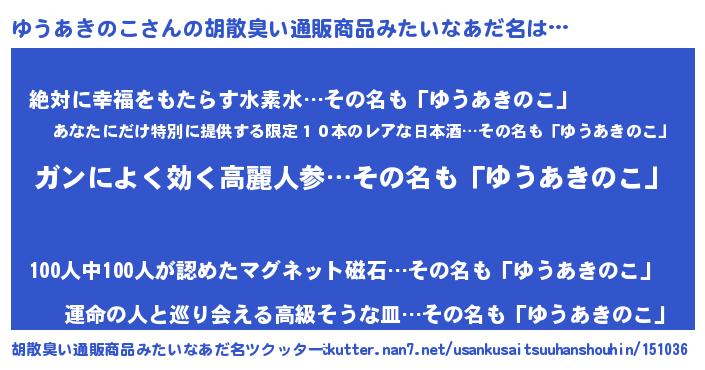 | 意味不明あだ名 | 『自称ゆうあきのこ』 |