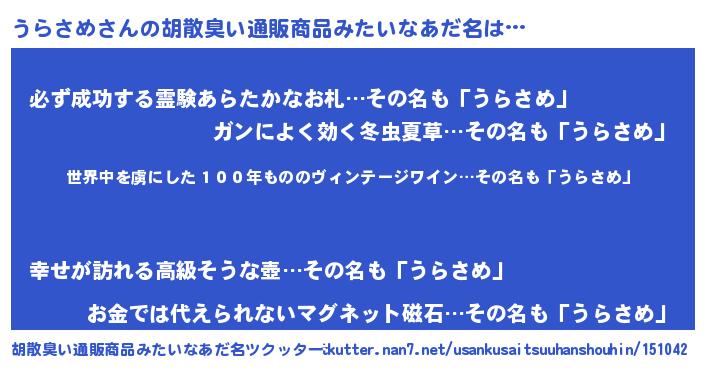 | 男性向けラノベタイトル風あだ名 | 『はたらくうらさめさま!』 |