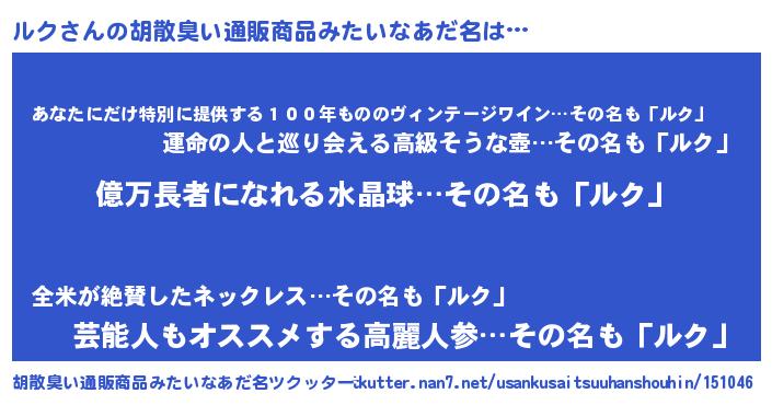 | ピコ太郎風あだ名 | 『ルコ二郎』『ピル次郎』『ルク太郎』 |