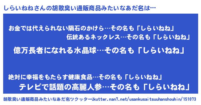 | ヘコむあだ名 | 『しらにゅー』『しらぷりん』 |