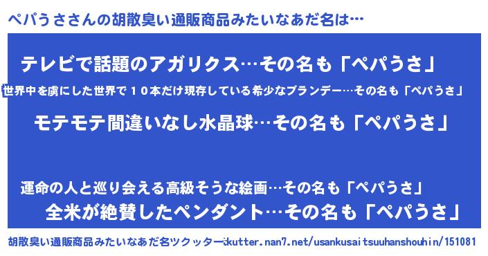 | 意味不明あだ名 | 『ペロリンペパうさ』『自称ペパうさ』 |