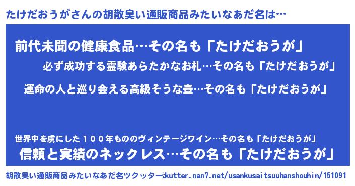 | 意味不明あだ名 | 『たけだおうがフォーエバー』 |