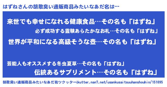 | ヘコむあだ名 | 『豆乳』『はずね(爆)』『はず太郎』 |