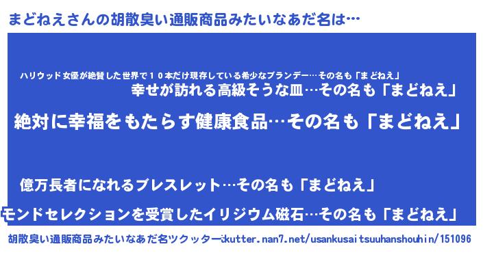 | 意味不明あだ名 | 『永久保存まどねえ』 |