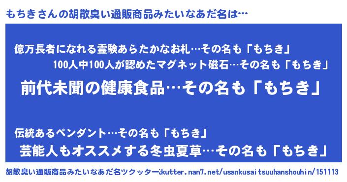 | ヘコむあだ名 | 『もちき(爆)』『もちふぇ~』 |