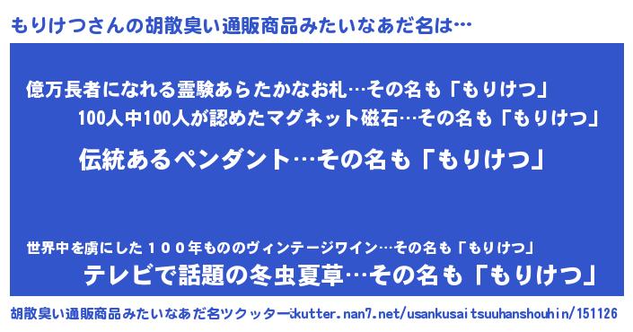 | ヘコむあだ名 | 『もりぷりん』『もりっふぃ~』 |