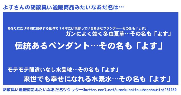| ヘコむあだ名 | 『よすぷりん』『よす(震え声)』 |