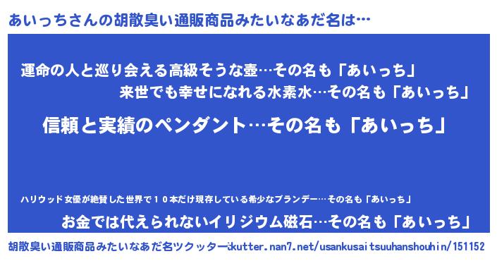 | ヘコむあだ名 | 『あいっぺ』『レバニラ』『あいもー』 |