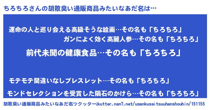 | ヒーロー風カッコイイあだ名 | 『ネオチロチロ』『ウルトラちろちろマン』 |
