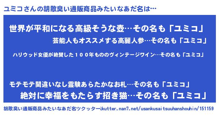 | ヘコむあだ名 | 『牛乳』『ユミコ(笑)』『ユミにゅー』 |