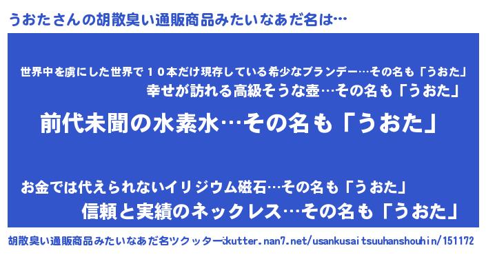 | 意味不明あだ名 | 『永久保存うおた』『めかぶ科うおた属』 |