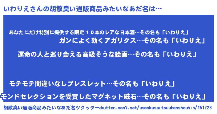 | 意味不明あだ名 | 『いわりえフォーエバー』『自称いわりえ』 |