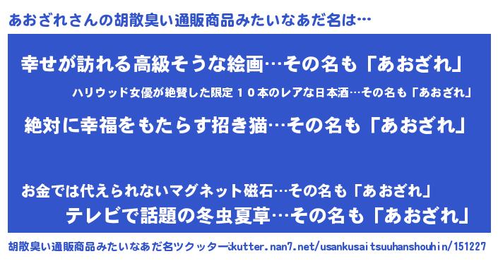 | 意味不明あだ名 | 『永久保存あおざれ』『自称あおざれ』 |
