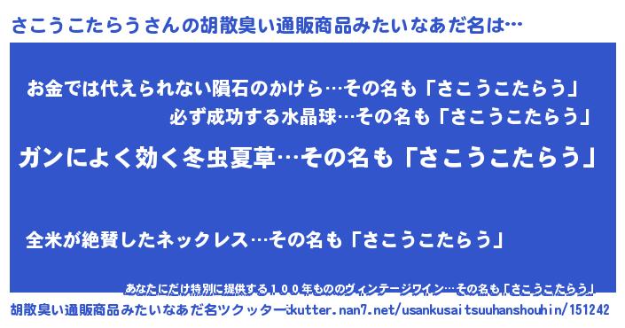 | 意味不明あだ名 | 『自称さこうこたらう』 |