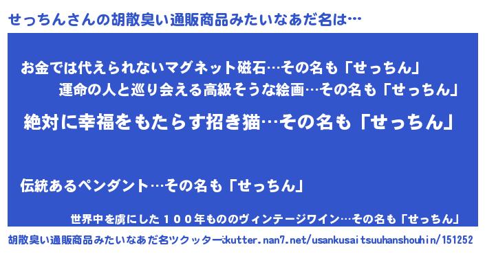 恥ずかしいあだ名 | 『せっちん』『ボンバーヘッドせっ』 |