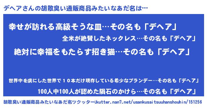 | 意味不明あだ名 | 『永久保存デヘア』『デヘアフォーエバー』 |