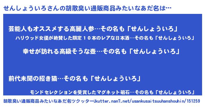 | 意味不明あだ名 | 『せんしょういろフォーエバー』 |
