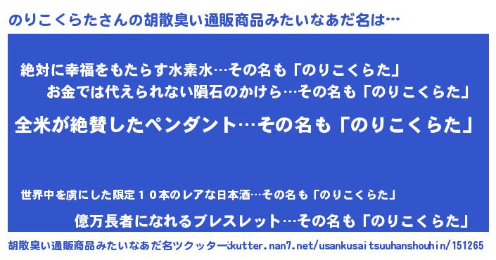 | 男性向けラノベタイトル風あだ名 | 『のりこくらたの嫁は女の子じゃないと思った?』 |