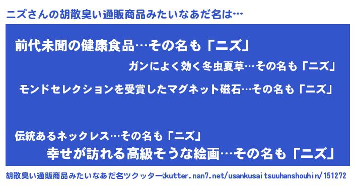 | ヒーロー風カッコイイあだ名 | 『慈愛の使者ニズ』『ネオニズ』 |
