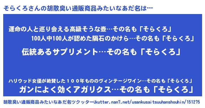 | 意味不明あだ名 | 『とにかく怪しいそらくろ』 |