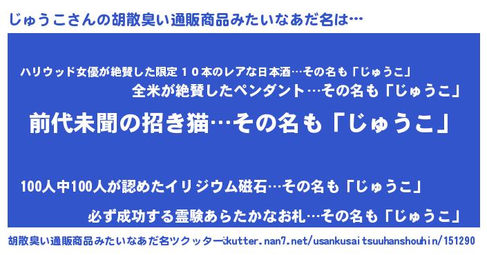 じゅうこさんの胡散臭い通販商品みたいなあだ名をツクッター!