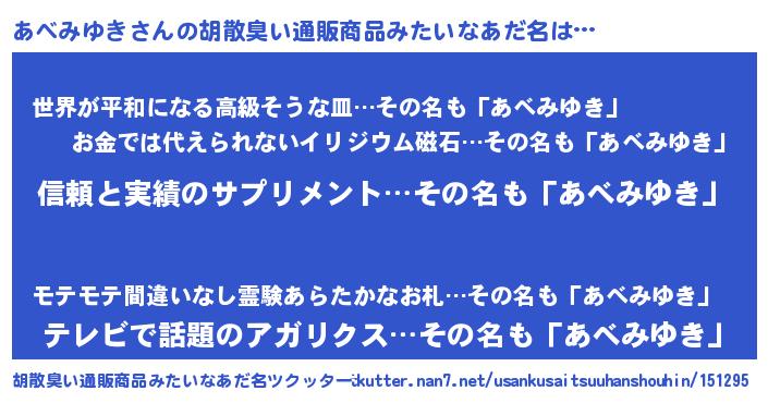 | 男性向けラノベタイトル風あだ名 | 『緋弾のアベミユキ』 |