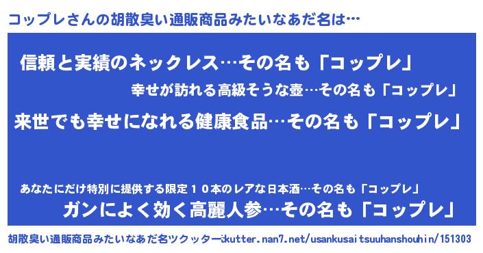 | ヘコむあだ名 | 『コップレ(爆)』『コッ太郎』 |