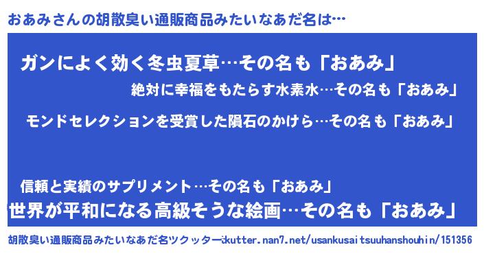 | 意味不明あだ名 | 『眠気覚ましガムおあみ味』『自称おあみ』 |