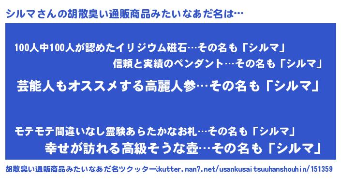 | ヒーロー風カッコイイあだ名 | 『究極戦士シルマ』『正義の使者シルマ』 |