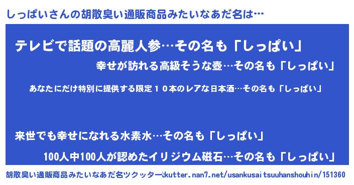 | 意味不明あだ名 | 『住所不定無職しっぱい(65歳)』 |