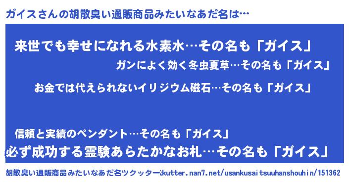| ヘコむあだ名 | 『ガイス(笑)』『ガイにゅー』 |