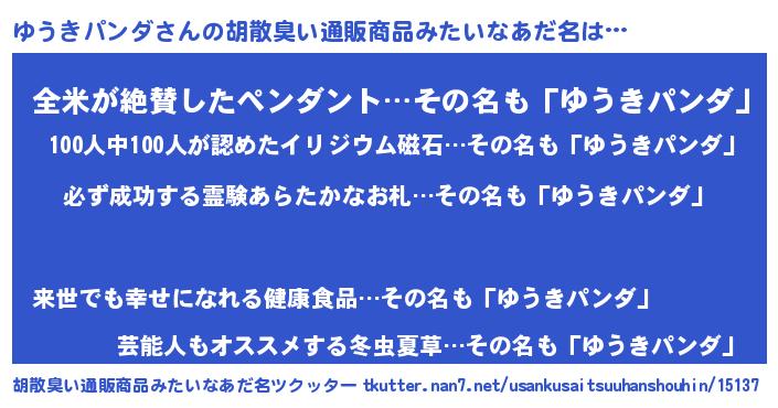 | 伝説のあだ名 | 『伝説のスナイパーゆうきパンダ』 |