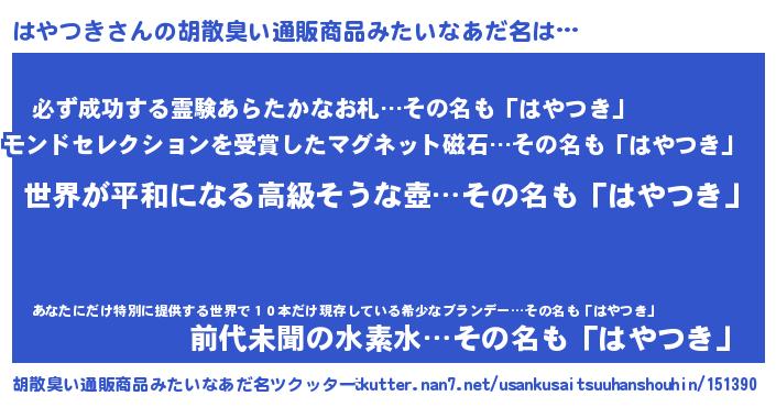 | ヒーロー風カッコイイあだ名 | 『ウルトラはやつきマン』『ネオハヤツキ』 |
