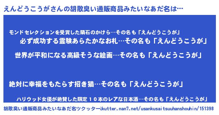 | 肩書あだ名 | 『えんどうこうが総理大臣』 |