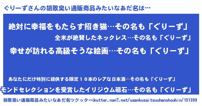 | ヒーロー風カッコイイあだ名 | 『ウルトラぐりーずマン』『ネオグリーズ』 |