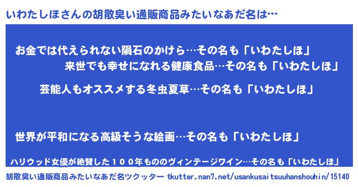 | ヘコむあだ名 | 『いわたしほ(遠い目)』『豆乳』 |