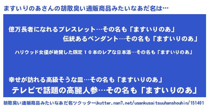 | 欧米人風あだ名 | 『ダレノガレますいりのあ』 |