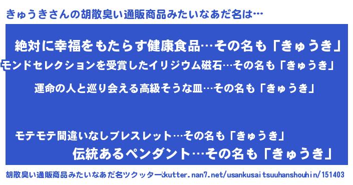 | 意味不明あだ名 | 『きゅうきフォーエバー』 |