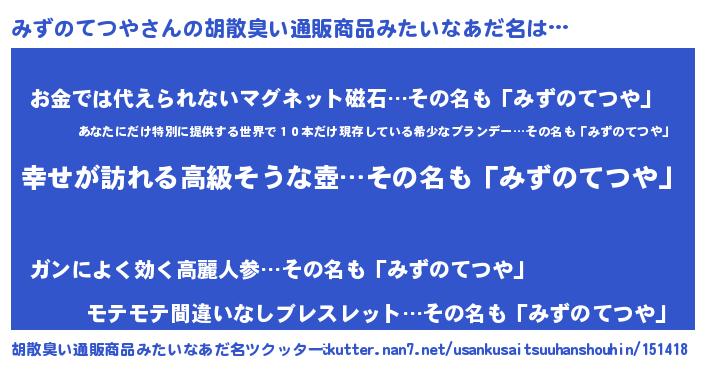 | 意味不明あだ名 | 『みずのてつやフォーエバー』 |
