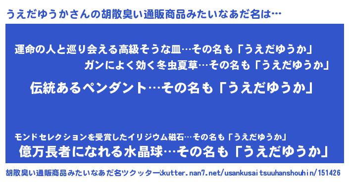 | 男性向けラノベタイトル風あだ名 | 『ダンジョンにうえだゆうかを求めるのは間違っているだろうか』 |