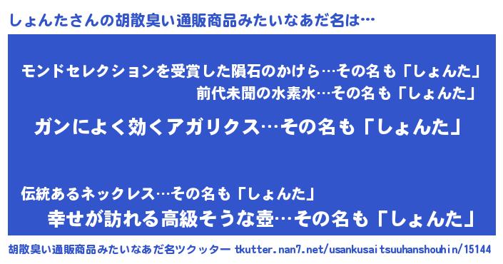 | 意味不明あだ名 | 『自称しょんた』『しょんたフォーエバー』 |
