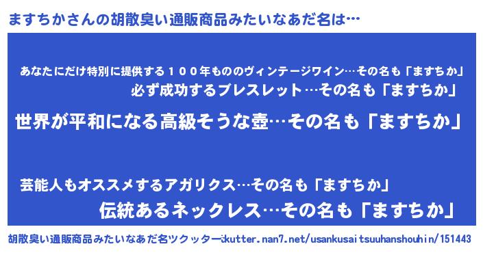 | ヘコむあだ名 | 『なまこ酢』『ますお』『ますもー』 |