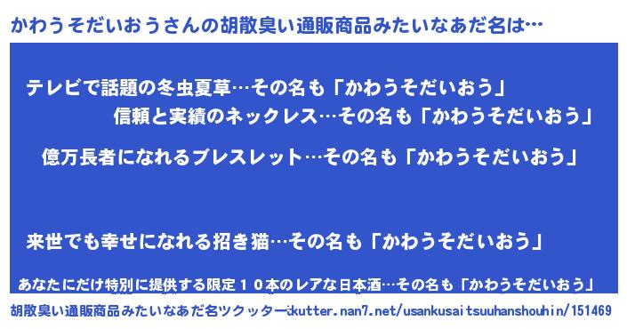 | ヒーロー風カッコイイあだ名 | 『スーパーカワウソダイオウ』 |