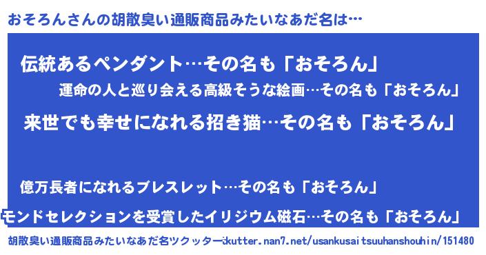 | 恥ずかしいあだ名 | 『おそちん』『オソリンリン』 |