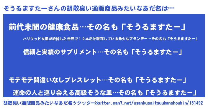 | ヘコむあだ名 | 『そうお』『そうるますたー(爆)』 |