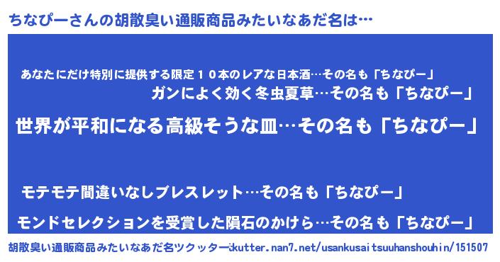 | 男性向けラノベタイトル風あだ名 | 『転生したらちなぴーだった件』 |