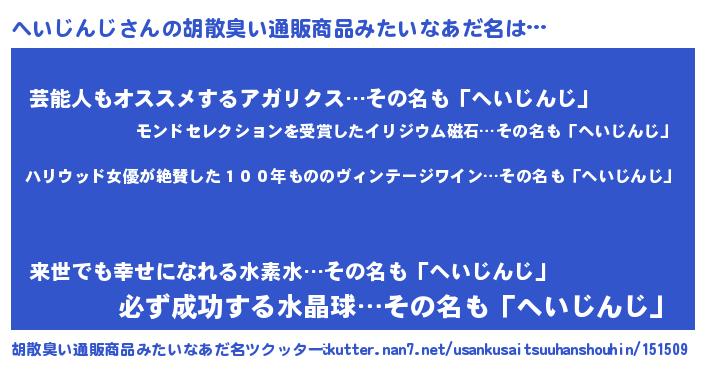 | ヘコむあだ名 | 『へいにー』『へいじんじ(苦笑)』 |